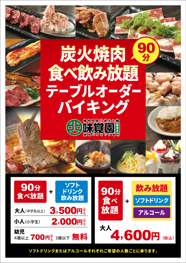 食べ放題コースの価格改定をさせていただきます。