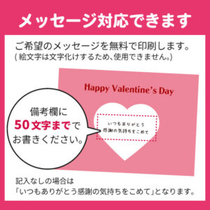 2月1日(日)〜2月10日(火)の期間中にご注文いただき、備考欄に「バレンタインラッピング希望」とご記載いただいた方へ、