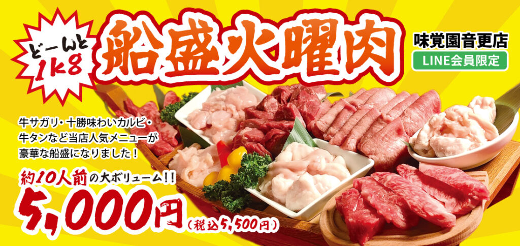 【味覚園音更店】火曜はLINE会員限定イベント!〈数量限定!船盛火曜肉〉