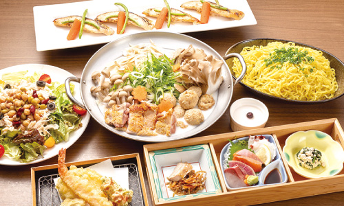 目の前で職人が作る料理を眺めながらゆったりとしたカウンター席でお食事をお楽しみください。